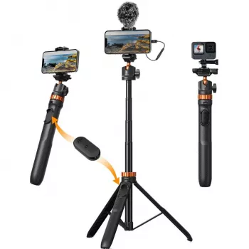 Tripod Selfie Stick with Bluetooth Remote and GoPro Adapter Extendable Stand