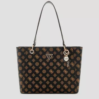 GUESS Noelle Small Logo Tote Bag with Gold Hardware – Brown Peony Print