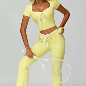3 Piece Women’s Push Up Sports Set with High Waist Leggings & Short Sleeve Top