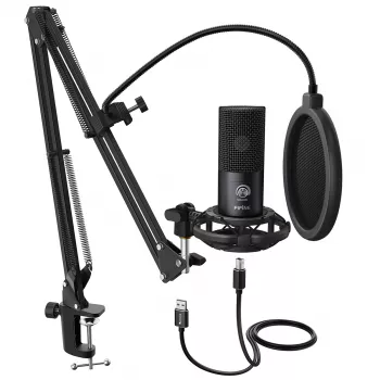 USB Condenser Microphone Kit with Adjustable Boom Arm & Pop Filter for Streaming