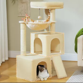 Cat Tree Tower with Condos, Hammock & Scratching Posts for 1-3 Cats