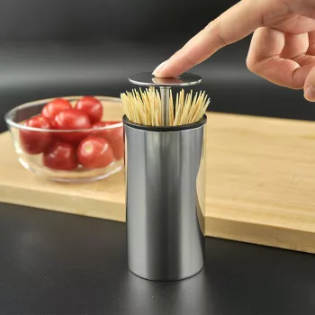 Automatic Stainless Steel Toothpick Dispenser – Pop-Up Cylinder Holder