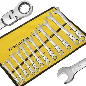 Ratcheting Combination Wrench Set 1/4″-7/8″ Metric Flex Head with Carry Bag